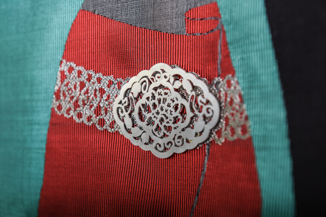 Women.Shoes.Freedom is a collection of new hand-woven art that explores the traditional and modern role of women, using traditional weaving materials juxtaposed with modern imagery.