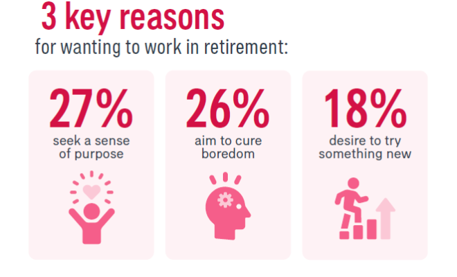 Less than three in ten (twenty-eight percent) are working purely for financial reasons. Instead, the top motivators for post-retirement work are: